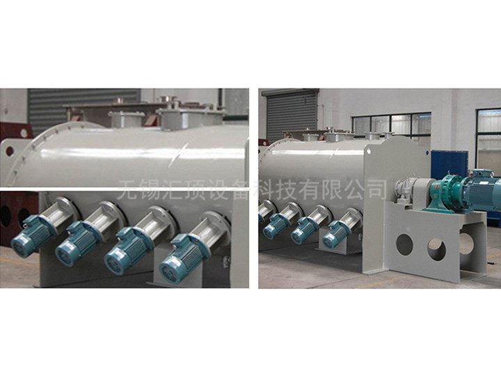 犁刀組軸:犁刀根據(jù)容積大小安排犁刀數(shù)據(jù),安裝在主軸上,在筒體內(nèi)作圓周湍動(dòng)流混合物料。