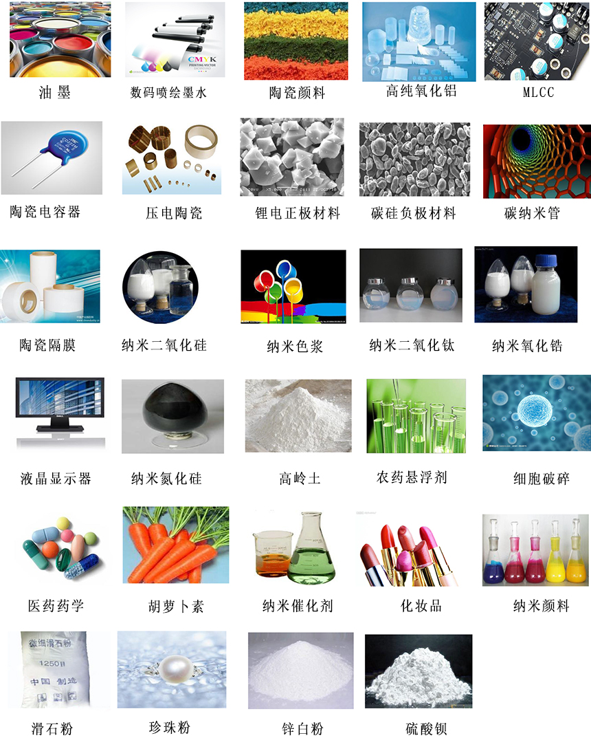 陶瓷材料、電池材料、數(shù)碼噴墨、高性能涂料、制藥等領(lǐng)域的研究與測試。